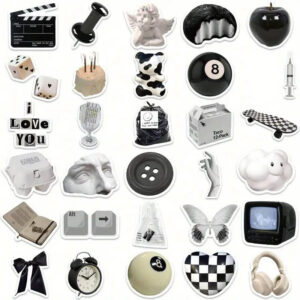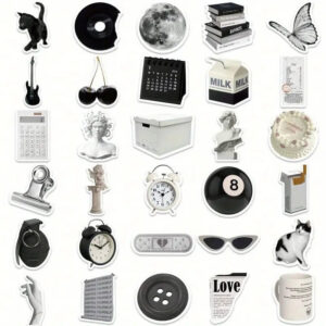 Looking for high-quality, waterproof, and reusable stickers to upgrade your accessories? Our Cute Aesthetic Stickers Black and White pack includes 61 unique vintage-inspired designs, perfect for decorating your laptop, water bottle, phone case, skateboard, scrapbook, car, bike, and more!