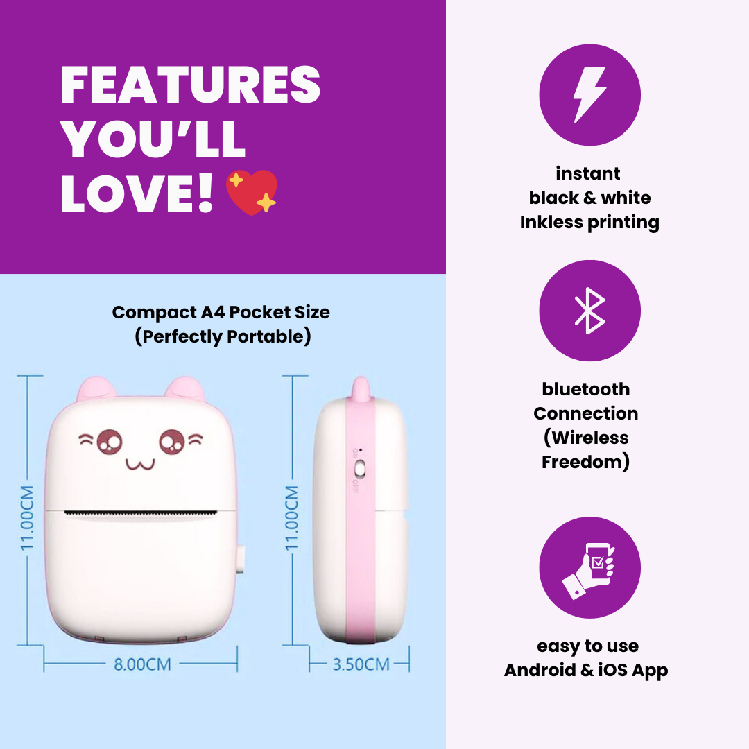 🎨 Encourages creativity by letting kids print projects, notes, and designs anytime, anywhere!