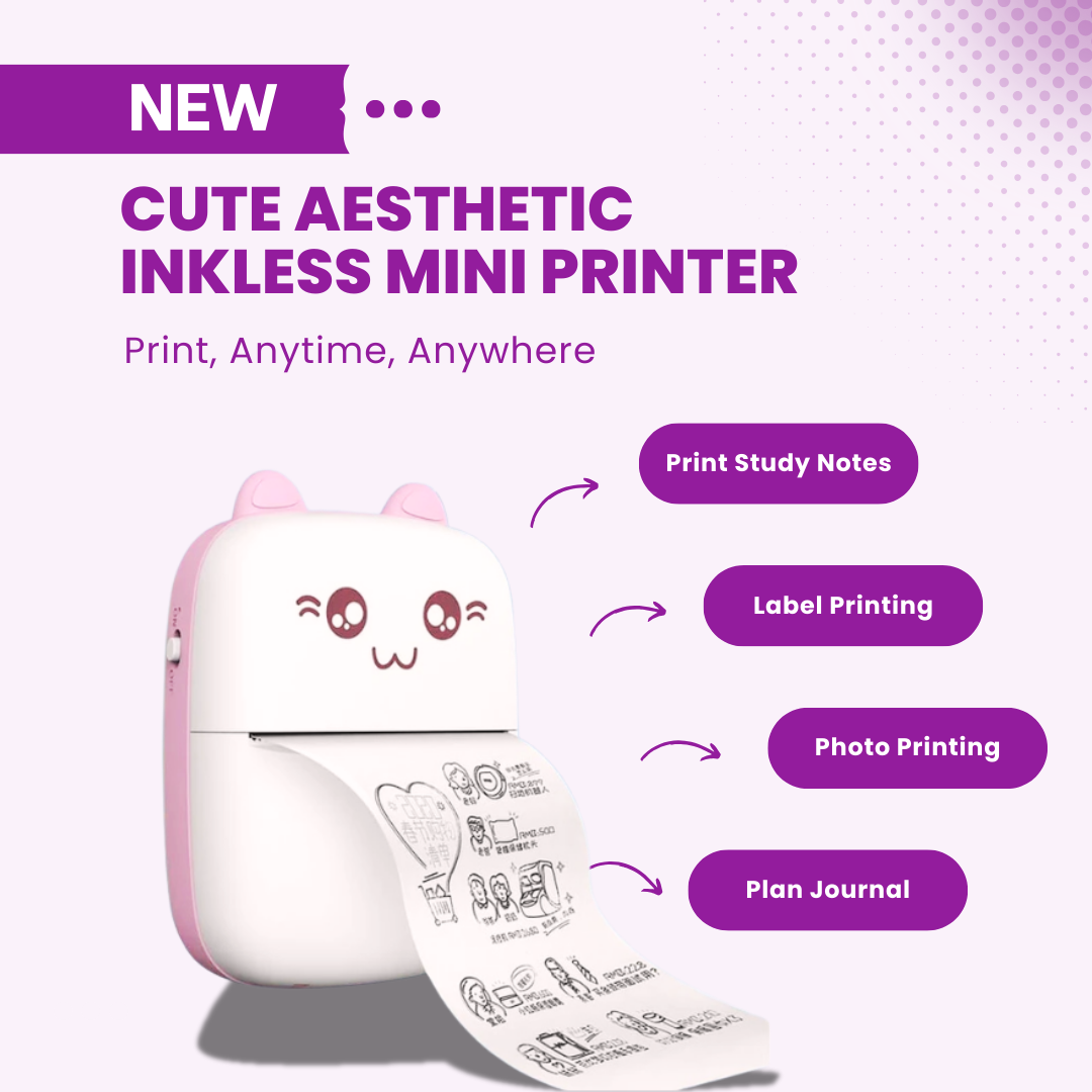 Inkless Mini Printer (Portable Thermal Bluetooth & Wireless) - Pink - printerPortable Mini Printer For Students